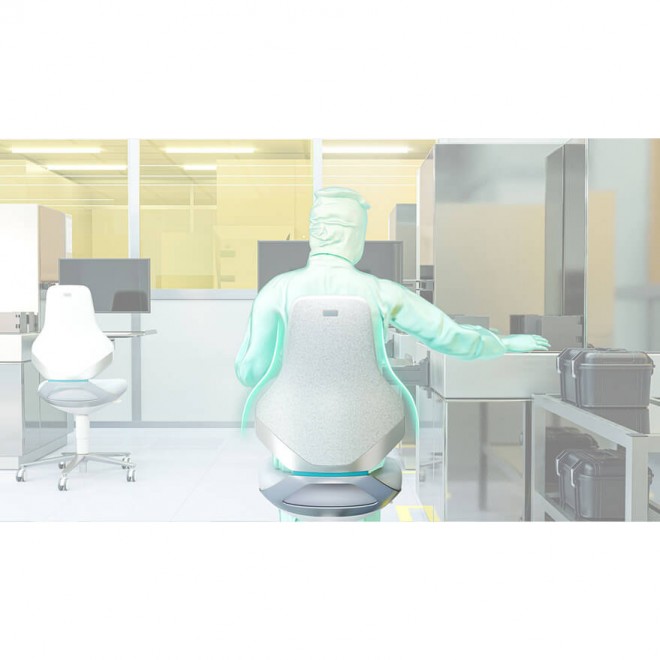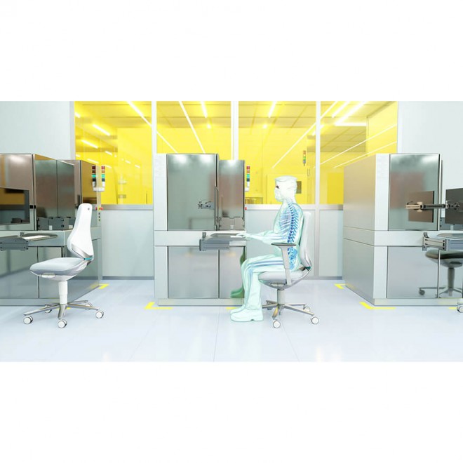 Yapılan çalışmalar, kalitesiz sandalyelerde oturan kişilerin enerjilerinin yaklaşık %40'ını yanlış duruşu telafi etmeye harcamak zorunda kaldığını göstermektedir. Ancak temiz odada çalışmak, özellikle çalışanın enerjisine ve odaklanmasına ihtiyaç duyar. Bu nedenle CLEANROOM TEXON, ergonomik tasarımı ve bireysel ayar seçenekleri sayesinde yüksek düzeyde konfor ve doğru destek sunar, böylece çalışanın çabaları tekrar eldeki görevlere yönlendirilebilir.