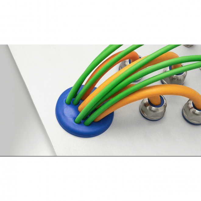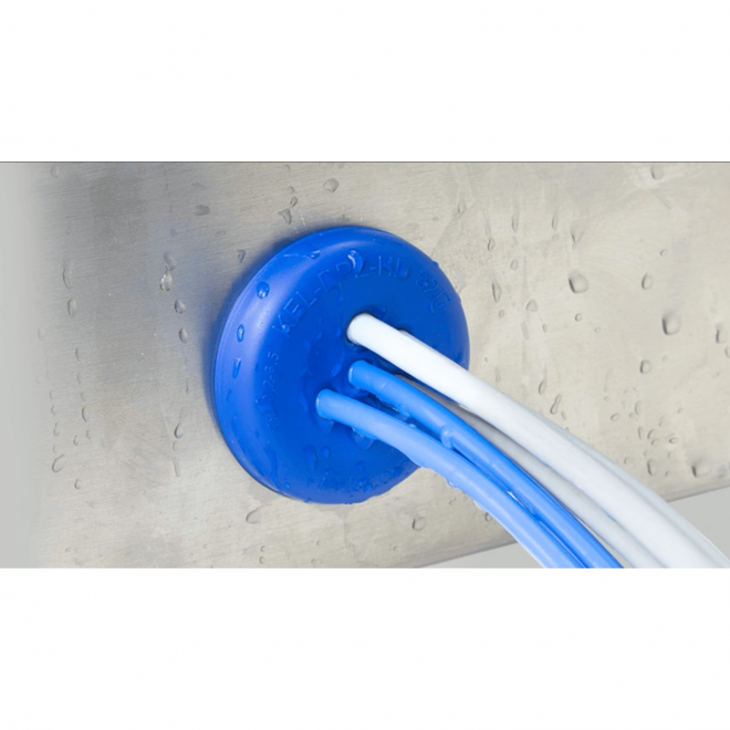 Ürünün ön yüzeyi, kir ve bakteri birikimini önlemek amacıyla tamamen pürüzsüz tasarlanmıştır (Ra = 0,421 μm). Kullanılan elastomer malzeme FDA uyumludur ve gıda güvenliği için Sinyal Mavisi (RAL 5005) rengindedir. Kablolar, sadece zarı delip iterek geçirilir ve bu işlem sonucunda IP66 / IP68 koruma sınıfı sağlanır.