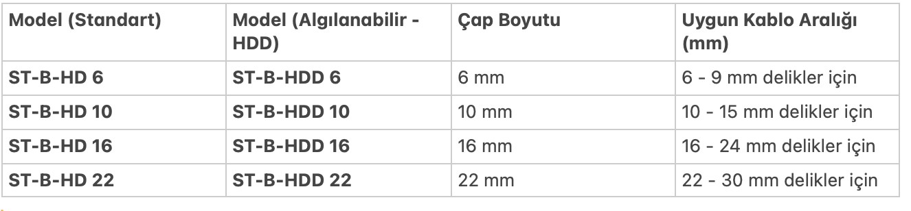 ST-B-HD serisi, icotek'in KEL-DPZ-HD gibi membranlı kablo giriş plakalarında kullanılan, yanlışlıkla delinmiş veya kablosu sökülmüş membran deliklerini kapatmak için tasarlanmış hijyenik kör tıpalardır. Bu tıpalar sayesinde, plakanın tamamını değiştirmeye gerek kalmadan IP66 / IP68 sızdırmazlık seviyesi ve hijyen standardı geri kazandırılır.