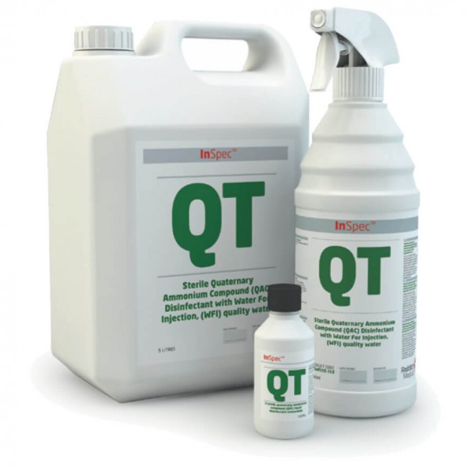 InSpec™ QT, önceden seyreltilmiş ve konsantre formatlarda steril bir dezenfektandır. InSpec™ QT, ISO 6 temiz odada GMP'ye göre üretilmiştir. Ürün ISO sınıf 5 ortamında doldurulur ve kapatılır.